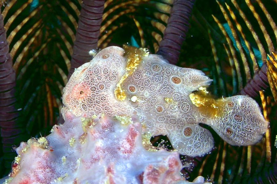 Lapus Lapus Island has some of the most spectacular coral growth we have ever seen. There is a huge variety of soft and hard coral, much of it in pristine condition. Other marine life includes giant frogfish, painted frogfish, smashing mantis shrimp, various sweetlips, cuttlefish and lionfish. There are many nudis, several varieties of commensal shrimp and also porcelain crabs. A great macro site and at the end of the dive you come to 8 meters onto a seemingly endless beautiful soft coral garden.