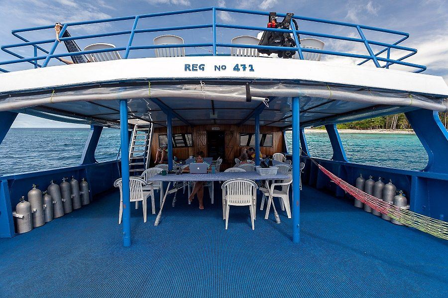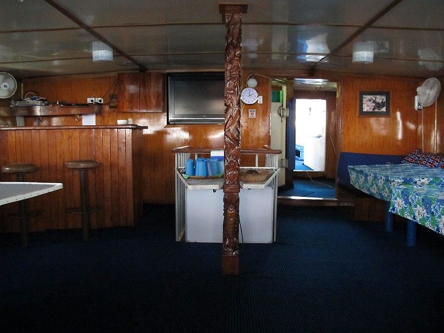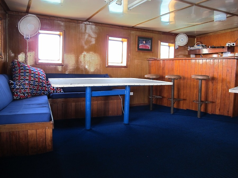 The dive sites are suitable for beginners as well as well as advanced divers, who can team up in buddy pairs or enjoy guided dives. There is plenty of space on board to store camera gear safely. Large tables are ideal photo work benches. TV's and DVD's allow for quick viewing of your "harvest". Power throughout the ships is 240V 50 cycle, using Australia style 3-prong outlets. There are also plenty of American style 110V 60 cycle outlets for charging cameras, strobes, divelights, etc.
