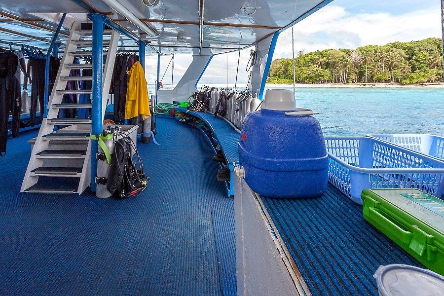 Diving is mostly conducted from two 6m (21ft) aluminium dive tenders which drop the divers exactly on the dive site and pick them up wherever they may surface, so there is no need for long swims or fighting currents. A well-trained crew of eleven plus two managers will load tanks and prepare all gear for the next dive. Nitrox fills are available to all Nitrox certified divers.