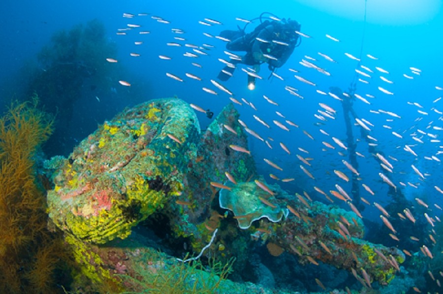 Wrecks: The Solomon Islands were the location of some of the most violent fighting during WWII; therefore, plane and shipwrecks of all sizes can be found everywhere in shallow waters as well as in the deep trench of Iron Bottom Sound between Honiara and the former capital Tulagi. Bilikiki does not offer deep or penetration wreck diving and only selects small WWII wrecks in very shallow waters as artificial reefscapes. None of the more famous wrecks in Iron Bottom Sound, like the Aaron Ward, or the Toa Maru in Gizo are featured on Bilikiki's itineraries.
