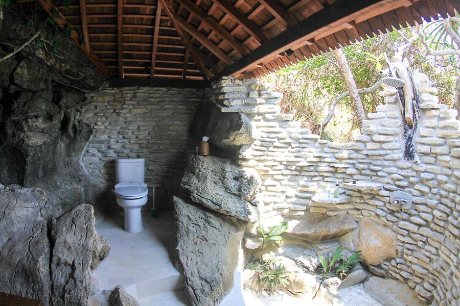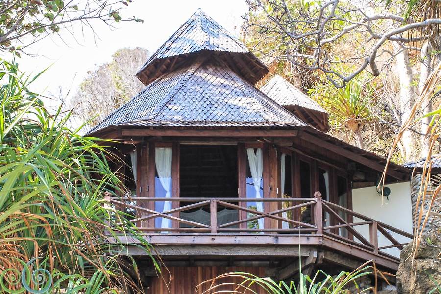 Villa Kalanme is located on the secluded South Beach. This Villa, named after one of the island's most important spirits, is a complex of three separate en suite bedroom units, with a shared round-roofed living area and huge outdoor living space. This Villa is particularly well-suited to those who enjoy greater privacy and gorgeous white-sand beaches. Access to this Villa is either by water taxi (on call and reachable by radio), or by a scenic but steep paved path.