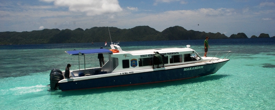 Guests get to Misool by speedboat transfer from Sorong in about 4-5 hours, depending on sea conditions. The first third is a scenic passage between the Papuan mainland and small islands of the Salawati group, fringed by mangroves. The second third of the journey is an open crossing over generally calm seas. During the final leg of the journey, you enter the breathtakingly beautiful island chain to which Misool belongs. You'll cruise between sheer cliffs and innumerable small islands, often escorted by dolphins.