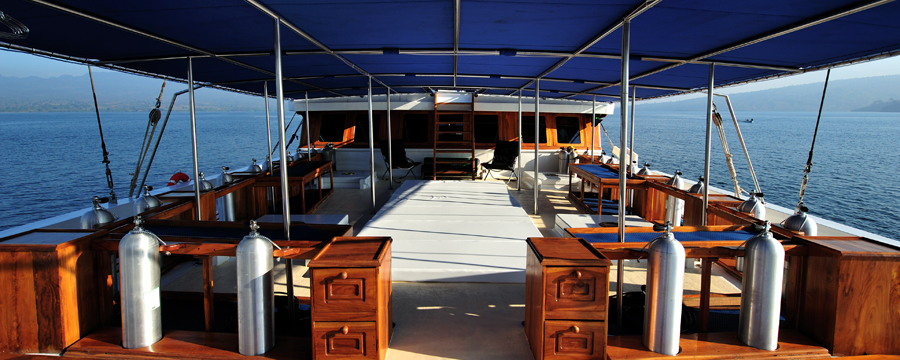 The large comfortable vessel has 8 cabins (each has a port hole) which easily accommodate 16 to 18 divers. All cabins are equipped with individually controlled air conditioning and a private bathroom (hot water, shower and toilet). Each of the two largest cabins has three equal-size single beds. If needed 3 people can comfortably share one of these huge cabins.