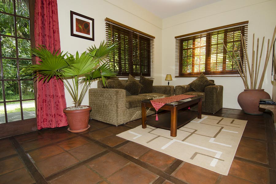 Deluxe Garden Suites have a king size bed, private bath and shower, safe, air conditioning, ceiling fans, 2 flat screen TVs w/cable and DVD, minibar, refrigerator, coffee/tea maker, separate living room and private garden.