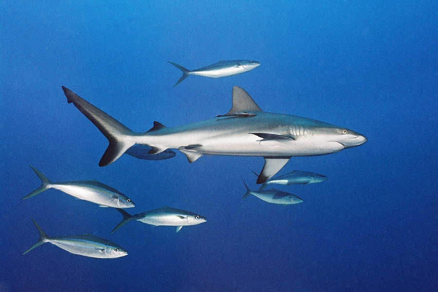 Blue Corner: The best known and most highly rated dive site in Micronesia features a shallow coral shelf that projects out into the ocean and has vertical walls on both sides. An upwelling created by the currents attracts schools of fish and large pelagics to the top edges of the walls. The dive is best known for its schools of grey reef sharks that cruise the edge of the wall. Two resident Napoleon wrasses often accompany the divers throughout their dive. Dogtooth tuna, eagle rays, manta rays, white tip and hammerhead sharks, turtles, schooling barracudas, and schools of reef fish populate the site.