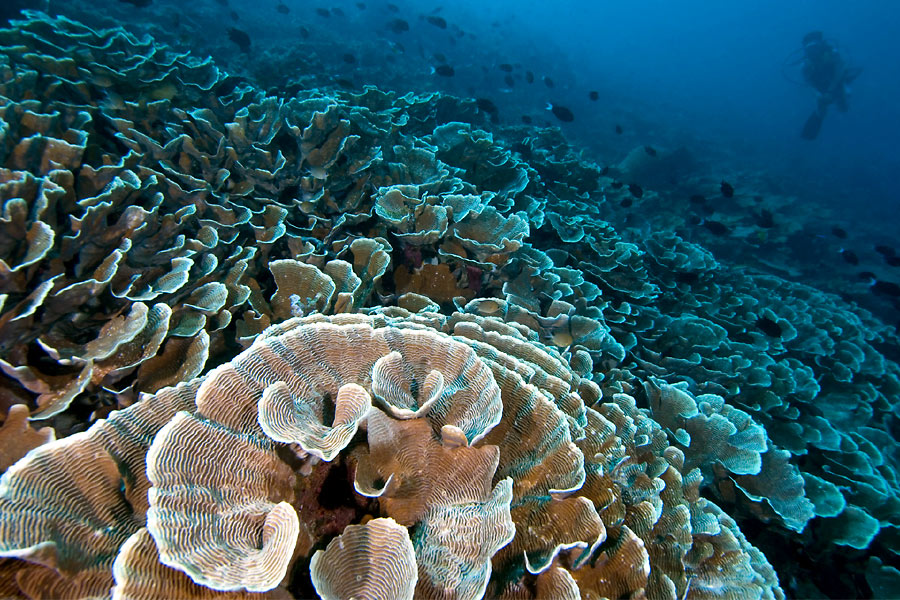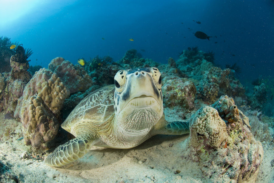 Maratua Atoll: The lagoon of Maratua is connected to the open sea by a narrow channel. The tides cause strong currents and therefore attract sharks, eagle rays, schools of jacks and barracudas, reef sharks and occasionally even hammerhead sharks.